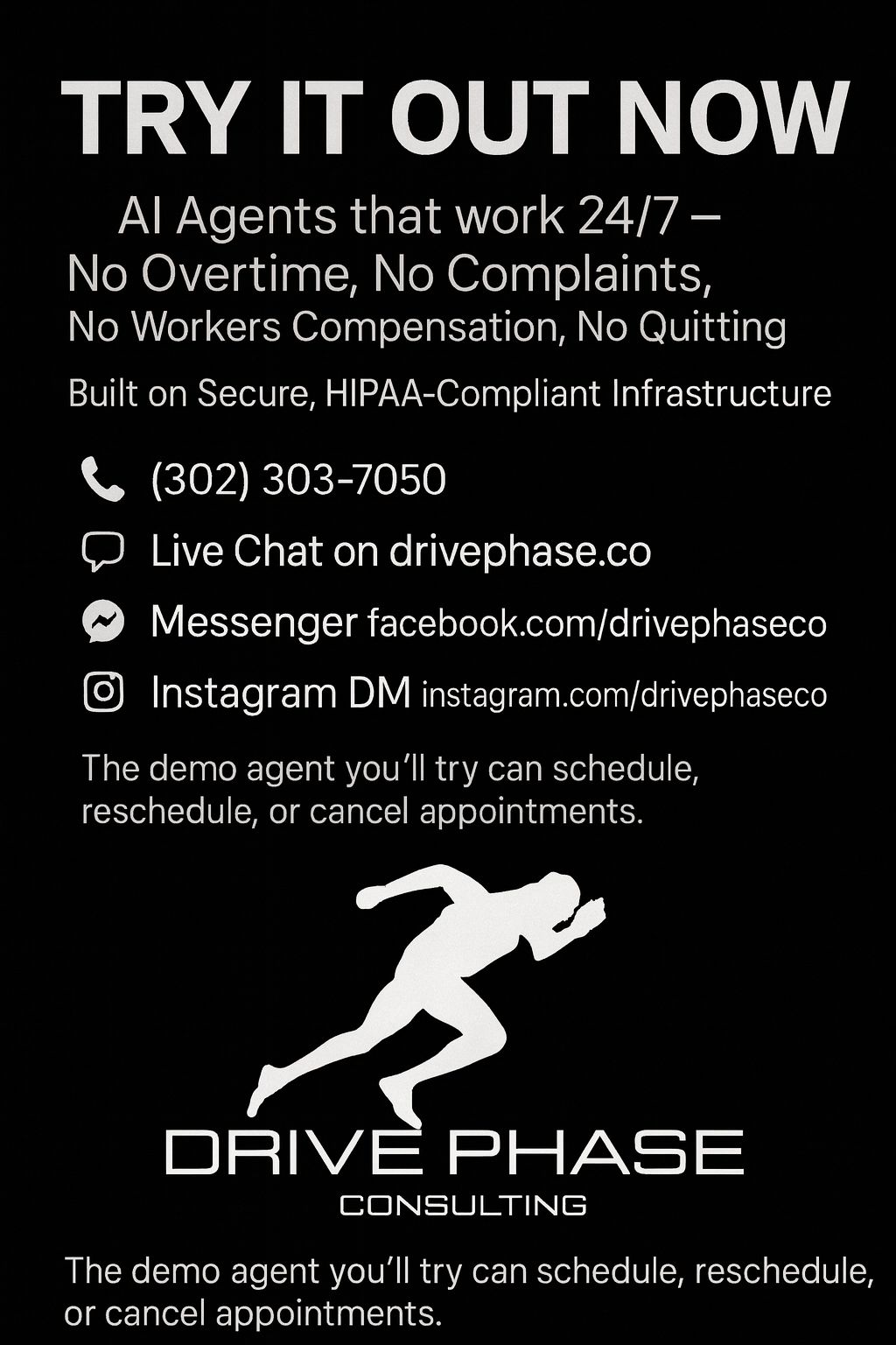 At Drive Phase Consulting, we believe the future of customer service and lead management belongs to AI-powered agents. Today, we’re excited to announce the launch of our live demo AI agent — built to show businesses just how powerful this technology can be.